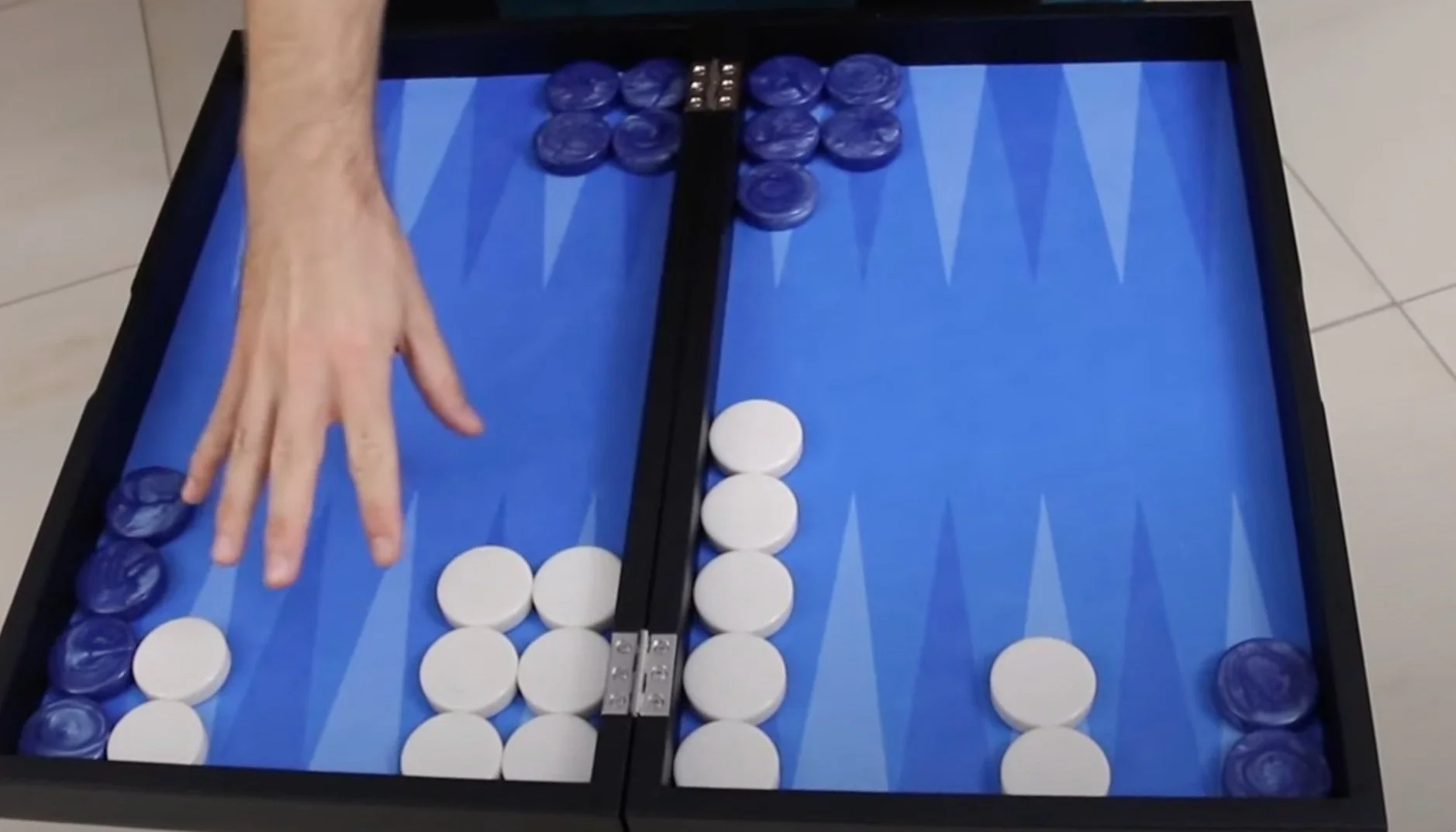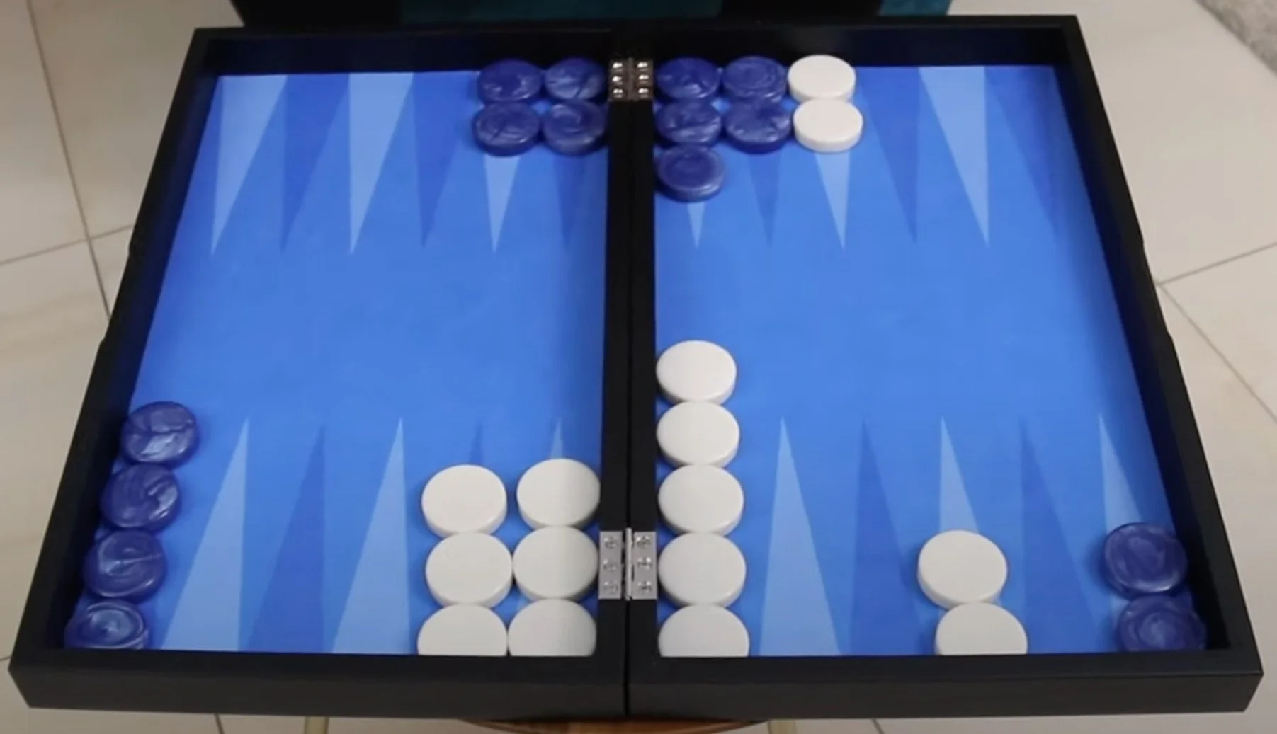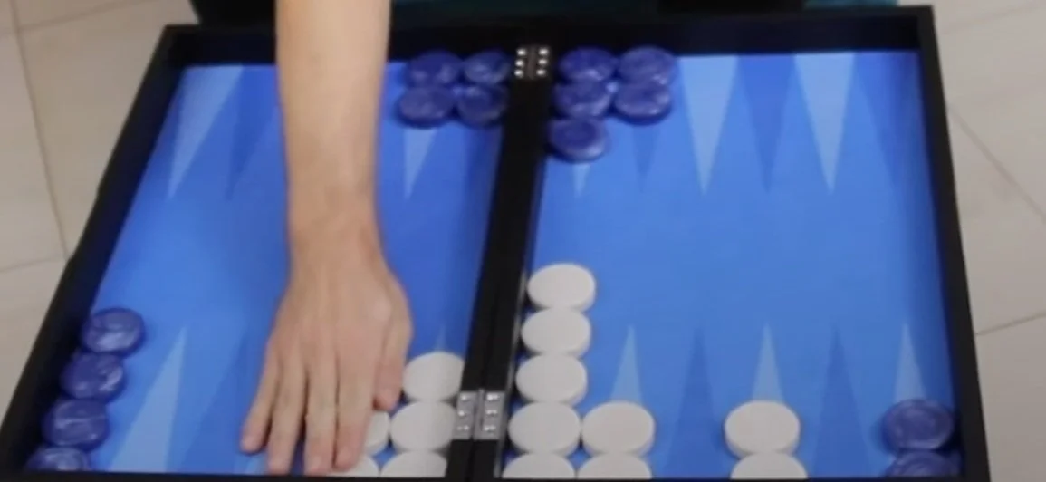 Early on in the game, in the opening position, both players have a long way to go; because we've got 167 pips. For instance, let's say that Blue successfully forms a prime, White has an advanced anchor and has moved a lot of checkers as well: